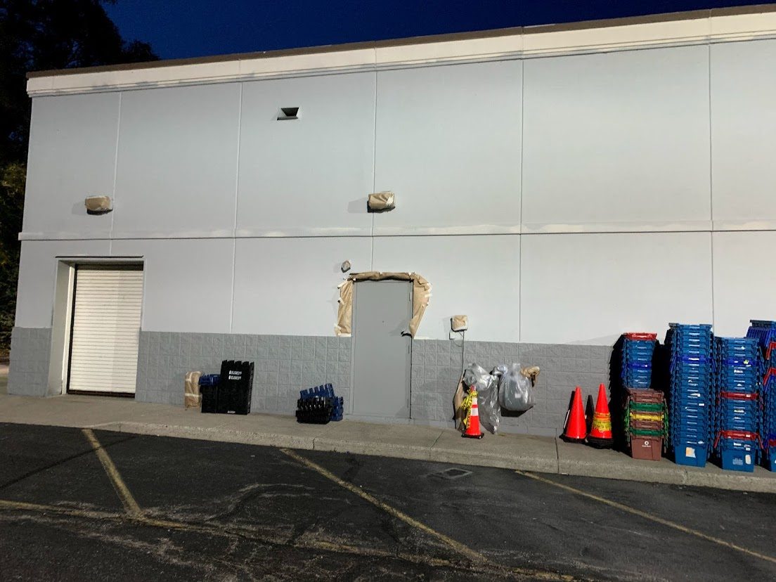 This project took place during COVID testing that was being run out of the pharmacy. The drive through needed to stay open during the project. Traffic management was required to make sure that COVID testing operations were not interrupted during the painting and repair project.